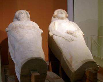 We vinden er veel bijzondere zaken. Moderne fotografie met heel apart werk van Hector Bermejo. Impressionistische schilderijen, middeleeuws werk en ook hier weer een Rubens. Uitgebreid aandacht voor vondsten uit de Romeinse tijd, aan het begin van onze jaartelling. In een zaal met Romeinse beelden staat centraal een groot standbeeld van keizer Trajanus. (Ja Nijmegenaren, ook hier!) Maar van nog verder terug, de 5e eeuw v.C. zijn de twee grote Phoenicische sarcofagen. Ze staan naast elkaar opgesteld in een zaal, twee grote stenen doodskisten met op de deksels de beeltenis van een man en een vrouw. Als we er stil naar staan te kijken, gaat ineens het licht uit. Pas als we ons weer bewegen, gaat het weer aan. De moderne tijd is meer doorgedrongen in Cadiz dan in Gdansk. Daar werd in iedere zaal het licht aan en weer uitgedaan door suppoosten. Hier doen de bewegingssensors dat. Die Phoeniciërs hebben daar geen weet van gehad. Hoewel, misschien was energie toen ook al schaars. We kunnen het ze niet meer vragen.