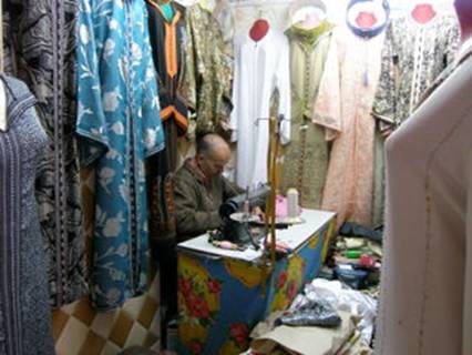 In Tetouan stappen we uit bij een poort die toegang geeft tot de Medina, de oude stad, die volledig ommuurd is. Ineens geen brede straten meer met autoverkeer, maar een enorme doolhof van smalle straatjes. Er zijn alleen al 40 moskeeën in de Medina, een Joods kwartier en ontelbare winkeltjes, bars, restaurants enzovoorts. Daarnaast zijn er op wat bredere stukken marktkramen. Meestal zitten dezelfde handwerkslieden bij elkaar hetzelfde straatje. Kleermakers zitten met hun naaimachine ingeklemd in hun handelswaar op een oppervlakte van 2 bij 3 meter. Verkopers van tapijten zitten boven op hun waren die weer opgestapeld zijn op de stalen matrassen van oude bedden. We kijken onze ogen uit. Wat een andere wereld! Wat ons op een gegeven moment wel opvalt, is dat we nauwelijks last hebben van opdringerige verkopers, waar de reisgidsen nogal uitvoerig over verhalen. Misschien heeft het er mee te maken dat ons kleine groepje voortdurend in de gaten wordt gehouden door twee gidsen en een onduidelijk iemand met een portofoon. Natuurlijk brengen de gidsen ons op een bepaald moment in een groot huis waar verkopers alle moeite doen om ons een prachtig handgemaakt tapijt te verkopen. Als we volhouden dat we aan boord van de zeiljacht wonen, vindt men ineens de oplossing: dan kopen we er toch één als cadeau voor de familie thuis? Wij hebben echter alleen belangstelling voor een originele tajine (aardewerken kookpot). Tineke start de onderhandelingen en na uitvoerige onderhandelingen gaat de pot in de rugzak. De lunch is traditioneel de meest uitgebreide maaltijd in Marokko. De soep is wat flauw, maar de couscous met groenten en kip (uit een grote tajine!) smaakt prima. De stukjes geroosterd vlees aan een spies zou van een kameel afkomstig zijn. De smaak is in ieder geval apart. Traditioneel is ook de afsluiting van de maaltijd: Marokkaanse whisky oftewel mintthee.