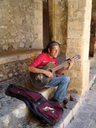 Dan komen we bij de Portal de ses Tanles, en lopen er door naar het andere Eivissa. In de poort zit een overjarige hippie met gitaar niet onverdienstelijk liedjes van de jaren zestig te zingen. Ook dat wordt zo langzamerhand al geschiedenis, realiseren we ons.