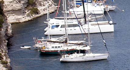 Meestal als we ankeren, liggen we achter anker en ketting met de boeg de windrichting aan te geven. Als er onvoldoende ruimte om te zwaaien is, maken we het achterschip vast aan de wal. Zo ankeren we in Bonifacio op Corsica. Maar als er dan iemand je anker onklaar maakt, heb je een echt probleem. Lees de reisbrief van augustus.