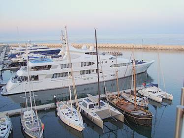 We kunnen er hele bomen over opzetten, lang en breed over praten en de zaak van alle kanten bekijken. Maar we hebben allebei het gevoel dat we nu in een omgeving terecht zijn gekomen, waar we ons niet thuis voelen. In San Remo hadden we eergisteren de pech dat de kade voor zeezwervers, zoals wij, beloofd was aan de deelnemers van een zeilregatta. Daarom kwamen we terecht in de jachthaven, tussen de megajachten. Letterlijk: er tussen. Die schepen met minstens een paar man personeel aan boord, met bewoners die zich niet eens bewust lijken te zijn dat er ook watersporters in de haven zijn.