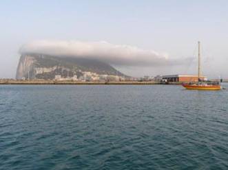 Toch gaan we weer naar Atlantische wateren. De laatste dag Med begint met windstil weer. De zee is vlak en de enige wind maken we zelf. Na de middag steekt er een heel licht briesje op, zodat we kunnen motorzeilen met alle zeilen op. Wanneer we de rots van Gibraltar in het oog krijgen is het ineens gedaan met luieren. Binnen vijf minuten krijgen we een stevige wind recht op de neus en begint de zee grote gaten te vertonen. De kluiver draaien we in en proberen we in de luwte van de rots te komen. Na een paar uur lukt dat, en kunnen we even op adem komen. Totdat we de neus om de hoek van de Straat van Gibraltar steken. Opnieuw geven wind en golven ons nog even te kennen dat we nu echt de Middellandse Zee gaan verlaten. Een uurtje later liggen we voor anker bij La Linea, en kijken naar de rots vanaf de andere kant. Wat je noemt: een heftig afscheid. We laten het maar eens een paar dagen op ons inwerken.