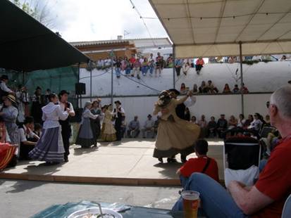 Om negen uur heeft de eerste familie al een tafel in bezit genomen en de thermoskannen en mand met broodjes staan klaar. De eerst sardientjes liggen een uurtje later al boven het vuur. Tegen half twee vinden wij nog een vrije tafel, dicht bij het podium. We eten een hapje, drinken een drankje en zien op het podium een flamenco groep zich gereedmaken voor hun optreden. Ze musiceren en dansen met een temperament die wij als noordelingen nauwelijks kunnen volgen. Ook de daaropvolgende folkloristische dansgroep is nagenoeg onuitputtelijk en hebben zichtbaar plezier. Voor degenen die daarna nog durven wordt de dansvloer vrijgemaakt; Tineke en Ineke weten zelfs een paar heren uit Alcoutim te verleiden tot een dansje.