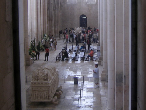 Nu staan er in de kerk twee graftombes, de één links van het middenschip en de ander rechts. Daar liggen, zoals hij had bevolen, Pedro en Inês met de voeten naar elkaar toe, zodat ze elkaar op de Dag des Oordeels direct weer zullen zien.
