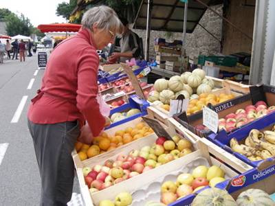 Vrijdagmiddag zien we de straat voor de jachthaven afgesloten worden voor de markt. Eén stalletje met fruit, één met crêpes en drie stalletjes met handgemaakte sieraden en we zijn er doorheen. Ook hier duidelijk het einde van het vakantieseizoen.