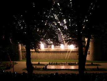 We lopen heel wat af door de binnenstad om een aantal voorstellingen bij te wonen. Zondagmiddag vinden we een mooi plekje in het park bij de stadsmuren waar een groot podium is opgebouwd en kijken en luisteren urenlang. ’s Avonds is op dezelfde plek een defilé en als afsluiting een vuurwerk. De combinatie met keiharde muziek is nieuw voor ons: oorverdovend, maar ook overdonderend mooi. Vannes heeft een bijzondere plekje in onze herinneringen veroverd.
